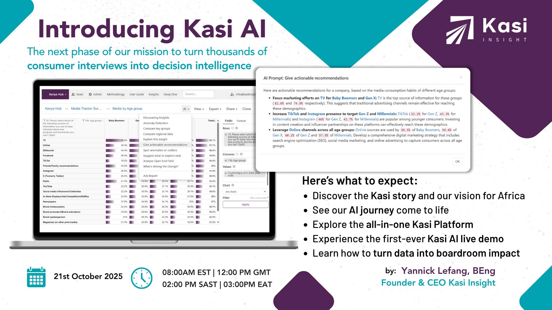 Join us for an exclusive webinar with Yannick Lefang, Founder & CEO of Kasi Insight, and be the first to experience: